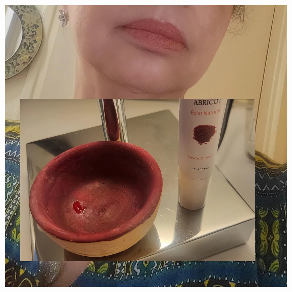 Voilà ce que ça donne, j'ai mis le blush abricot( Akker Fassi )sur les lèvres que jai mélanger avec l'Akker Fassi naturel. Qu'en pensez-vous ? vous